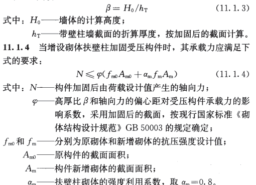 11. 1. 2 增設(shè)砌體扶壁柱加固墻體時,其承載力和高厚比的驗算應(yīng)按