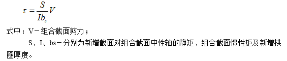 新、老截面間的有效粘結(jié),是保證新澆注混凝土層與原拱圈截面共同受力的保證。當(dāng)不考慮界面相對滑移時,得到剪應(yīng)力簡化計算公式。