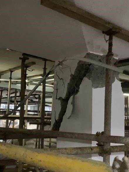 根據(jù)業(yè)主反映,據(jù)不完全統(tǒng)計(jì),目前鴻海萬科天空之城地下室約四十多根柱子爆裂。同時(shí)部分墻體開裂問題明顯,地基下沉,頂板開裂。