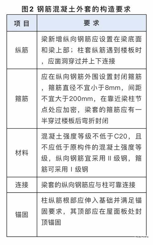 用這種方法加固框架梁、框架柱和排架柱,其構造要求見圖2。