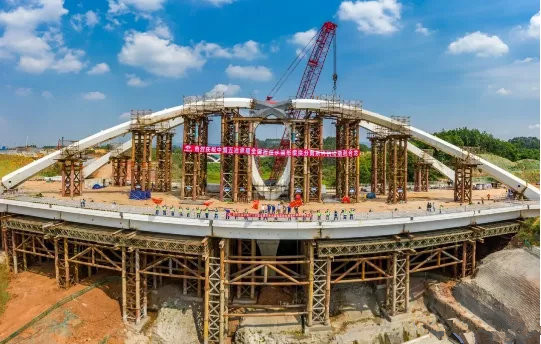 發(fā)布日期:2020-07-30 16:53:12 瀏覽量:1381全國首座水滴形梁拱分離系桿拱橋長160米,寬40.5米,橋梁基礎(chǔ)為群樁基礎(chǔ),下部結(jié)構(gòu)為花瓶型橋墩,上部結(jié)構(gòu)采用兩跨孔凈跨65.66米水滴形梁拱分離系桿異型鋼拱梁,宛如一顆巨大的水滴落在橋面上,其結(jié)構(gòu)形式及建筑造型為全國首創(chuàng)。