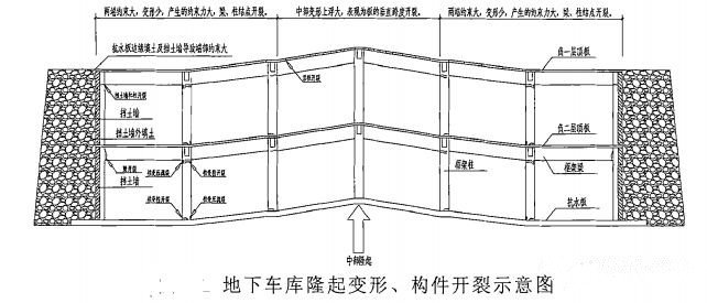 有些設(shè)計師只計算上部結(jié)構(gòu)總自重標(biāo)準(zhǔn)值大于總的水浮力設(shè)計值,就認(rèn)為抗浮設(shè)計滿足要求,未分析其上部自重荷載的分布和抗浮力的傳遞途徑,造成局部范圍因抗浮壓力或拉力小于水浮力,導(dǎo)致底板隆起,甚至造成地下室及上部結(jié)構(gòu)構(gòu)件大面積破壞。還要注意,有些設(shè)計人員和施工人員對地表水作用認(rèn)識不足,當(dāng)?shù)叵率业鼗鶠椴煌杆膸r層且支護嚴(yán)密的基坑,認(rèn)為不存在水浮力,造成施工期間或使用期間地下室上浮破壞的盲點。